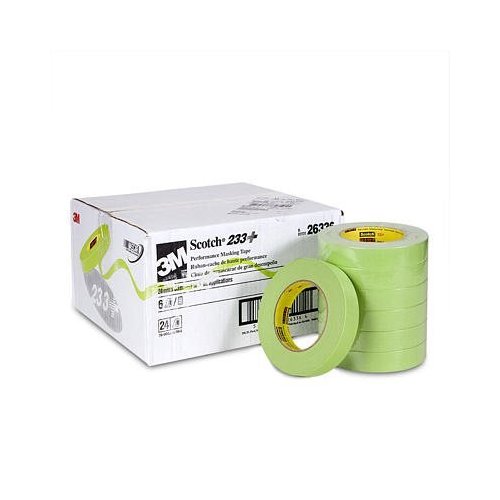 Scotch® Performance Green Masking Tape 233+, 26338 is a highly-conformable tape that provides the best adhesive transfer resistance, hugs curves, contours and provides outstanding paint lines. Goes on quickly and easily, sticks at a touch and stays put. Perfectly balanced to give outstanding masking results.